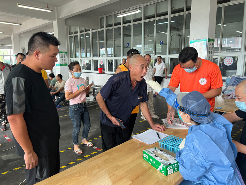 隨著臺風、疫情雙至,對安置點管理也提出了挑戰。觀海衛鎮44個避災點全部啟動后,均嚴格執行“防臺+防疫”雙結合模式?!八腥藛T一入駐,首先需要采集核酸,同時亮碼測溫?!毙l前初中臨時避災點的一位工作人員介紹,鎮級安置點醫院醫生進行常駐服務,來一個測一個,確保不遺漏。村級安置點因為人數不多,目前統一要求查驗72小時核酸后才能入駐,同時,嚴格進行入駐人員個人信息登記?!盀榻o安置人員提供優質服務,黨員干部、志愿者踴躍報名,不少機關干部都是主動請纓?!痹摴ぷ魅藛T說。