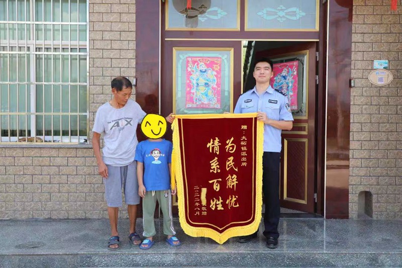“感謝民警同志幫忙落了戶口,孩子終于可以順利讀書了?!毙×旱臓敔斒指屑?,為大柘鎮派出所送去了錦旗。