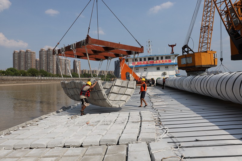 砼鉸鏈排鋪設。浙江省水利廳供圖