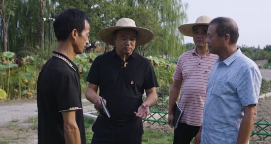 新港村田間地頭“草帽議事”。良渚街道供圖