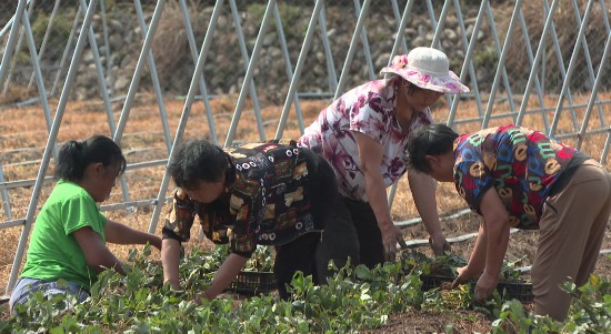 碧蓮鎮上村社區60歲的村民劉彩平平日里都在家種菜,最近閑來無事,聽聞草莓基地正缺人手,便報名去種草莓,一天能掙到一兩百元?!熬褪前尾?、種草莓,也不是很累,過來賺點零花錢,不用跑外面去,三輪車過來十來分鐘就到了?!眲⒉势秸f。