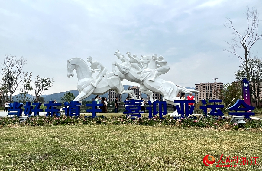 青草翠綠、鮮花綻放,解說墻上介紹著亞運馬術比賽相關內容,不遠處是一匹以馬為造型設計的兒童攀爬架,走進瑤琳鎮亞運馬術體育公園,這里處處展現了亞運元素。景觀面積約15萬平方米的亞運馬術公園和長達4.1公里的綠道相互交映,更是串聯起一條靚麗的沿江風光帶。
