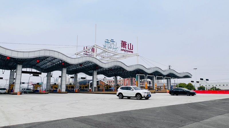 (新)蕭山收費站位于滬杭甬高速紅墾樞紐處,設置有7入9出共16條車道,其中ETC車道3入4出,混合車道4入5出。為提高道口通行效率,新收費站還設置了3條潮汐車道、4套出口匝道自由流設備和2套自主發卡設施。此外,與(新)蕭山收費站相連的空港高架也有新亮點,空港高架采用雙向八車道設計,將有效緩解大流量通行壓力,使司乘出行更加順暢、便捷、舒適。