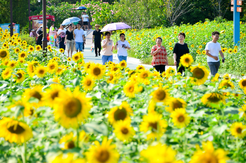 紹興鑒湖畔的向日葵陸續盛開,吸引不少游人前往打卡。高潔攝
