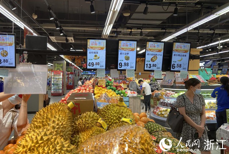 超市水果價簽旁附有“浙食鏈”二維碼。人民網 方彭依夢攝
