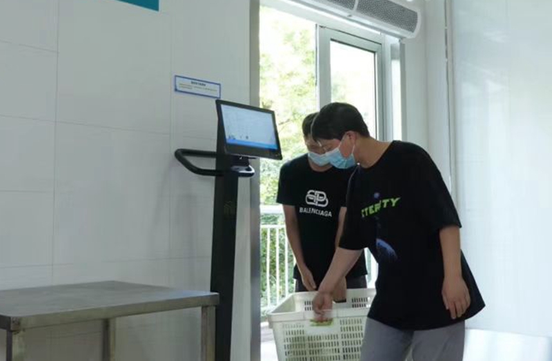 通過“校園智慧安心點餐系統”,學校食堂對食材進行智能驗收。紹興市市場監管局供圖