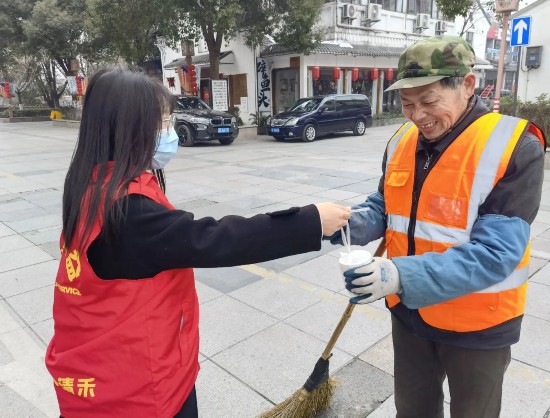 為城市美容師提供豆漿。湖州市文明辦供圖