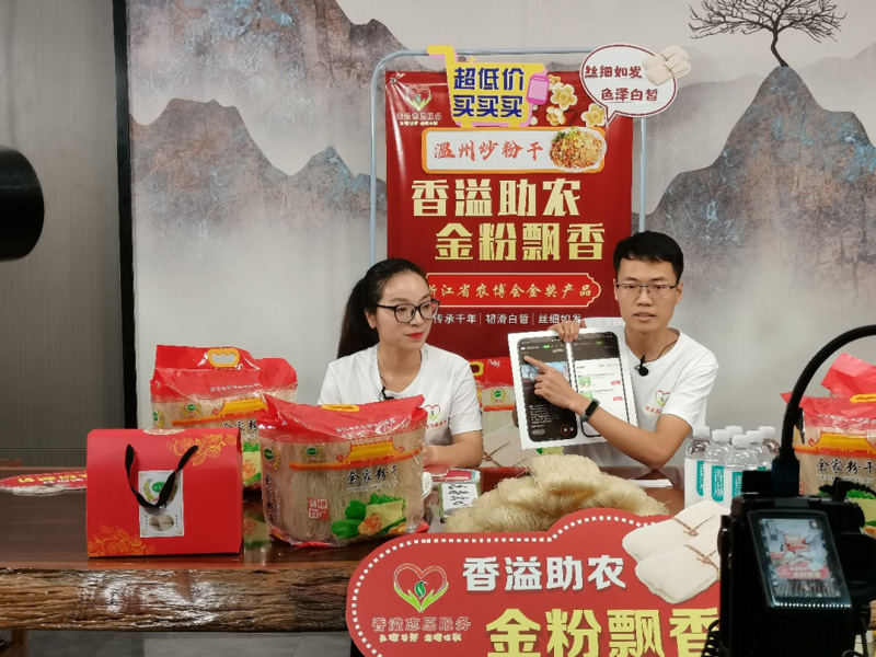 龍港蘆浦海鮮名聞遐邇,以蟶子養殖為主的海涂養殖、捕撈,一直是蘆浦“三大”經濟支柱之一;龍港余家慕社區粉干制作工藝傳承千年,社區內有數十家粉干工廠、家庭作坊,多次獲得“浙江省農業博覽會金獎”……然而,由于“外地知曉度不夠”“銷路窄”等問題,這些本地知名的農漁產品的銷量并不樂觀。新鮮肥美的蘆浦“灘鮮”、潔白如雪的余家慕粉干,如何拓寬銷路、打響品牌知名度?