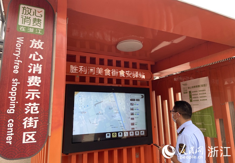 勝利河美食街設置的“食安驛站”。人民網 方彭依夢攝