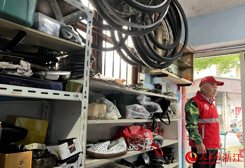 搬進鋪子沒多久,采荷街道組建了志愿服務隊,老郭毫不猶豫地報了名。通過參加志愿服務隊的活動,老郭的身影出現在社區、工地、養老院、火車站等各類志愿服務現場,靠著“啥都能修”的手藝,他成了隊伍里的“全能擔當”。