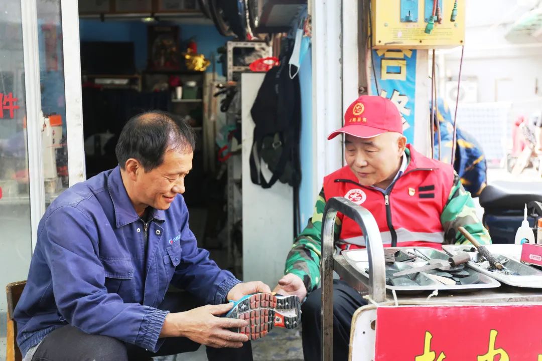 “修鞋找他就對了,又快又好;修自行車、修拉鏈、配鑰匙這些活他也在行。我們社區少了他,還真沒第二個人能干得了?!闭谂赃呴e聊的大姐附和道。還沒等老郭坐下,居民趙大伯拿著一雙運動鞋又找了過來,“大家都是老街坊了,我和他還都是社區黨支部的黨員,所以特別信任他。老郭的技術也好,以前還修過飛機咧!”