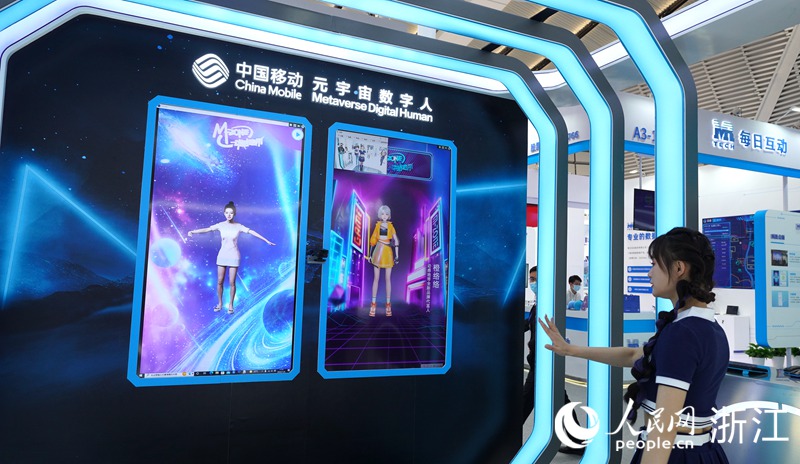 中國移動推出元宇宙數字人,可提取健身運動、舞蹈時的姿態,供客戶改善參考。人民網 劉欣蔚攝