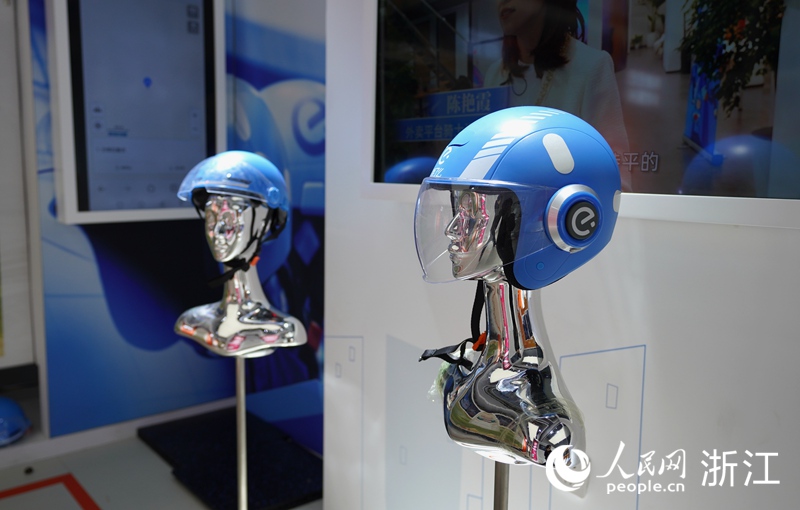 餓了么智能頭盔通過iot物聯網技術保障騎手安全。人民網 劉欣蔚攝