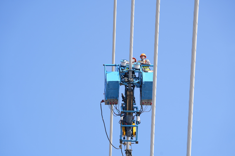 為避免拉索出現異常振動,確保橋梁結構安全,今年初以來,舟山管理中心積極推進金塘大橋斜拉索螺旋線修復工作。據了解,斜拉索質量小、阻尼低、柔度大,在風雨環境下容易發生振動,即“風雨振”。這種振動發生頻繁、危害嚴重,會對橋梁結構的安全構成威脅。從機理上分析,斜拉索表面水線的形成是導致振動的重要原因。為達到抑振目的,舟山管理中心在斜拉索表面纏繞螺旋線,破壞水線的形成,這也是目前最常用最有效的方法之一。