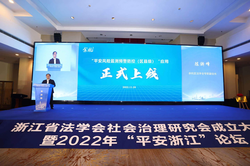 11月20日,浙江省法學會社會治理研究會成立大會暨2022年“平安浙江”論壇在杭州市余杭區舉行。會上,浙江省法學會社會治理研究會揭牌成立,余杭區平安風險監測預警防控應用正式上線運行。