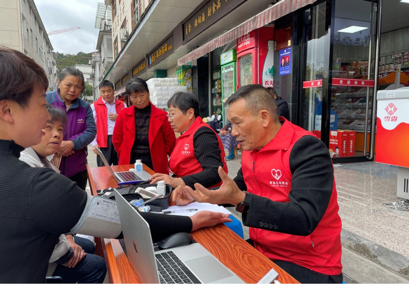 “香溢”志愿者為村民進行健康指導。黃昕攝