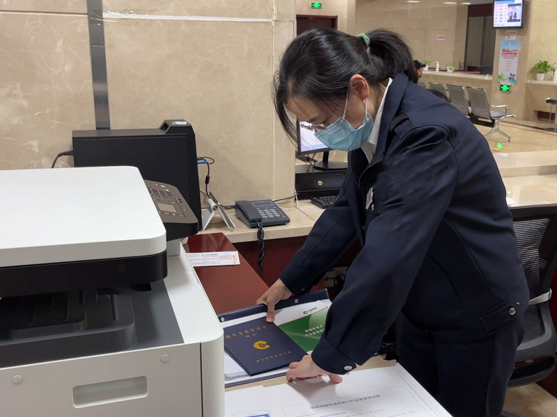 窗口人員為辦事群眾打包郵寄證件資料。淳安縣煙草專賣局供圖