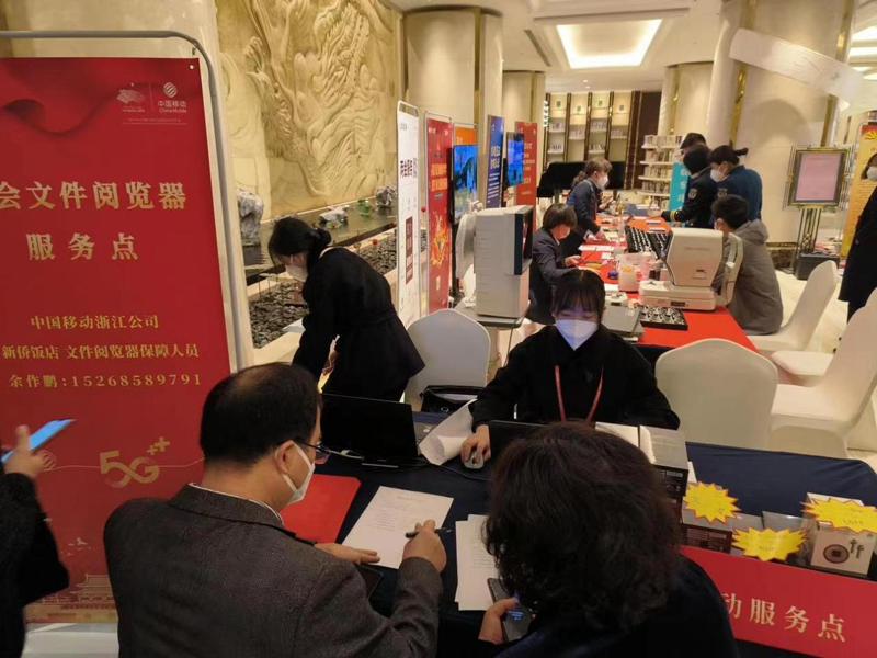 浙江移動提前完成各大駐地及浙江省人民大會堂網絡通信保障和兩會無紙化會議系統前期保障,并在兩會代表和委員下榻的賓館內設立移動服務點,充分展示浙江移動的服務能力。