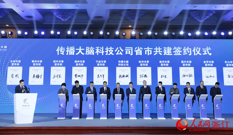 傳播大腦科技公司與浙江11個設區市簽署地市戰略合作協議。人民網 康夢琦攝