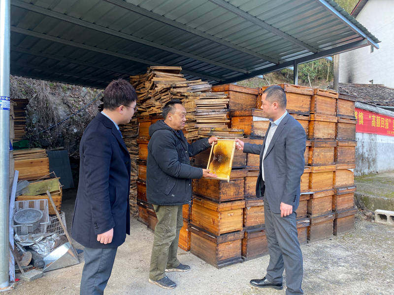 農行龍泉市支行工作人員走訪朱金明家查看蜂群情況。農行浙江麗水分行供圖