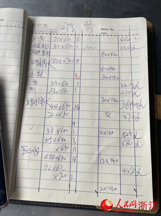 批發商薛九法的記賬簿。不到一個上午時間,他已銷售蔬菜10余噸。人民網記者 王麗瑋攝