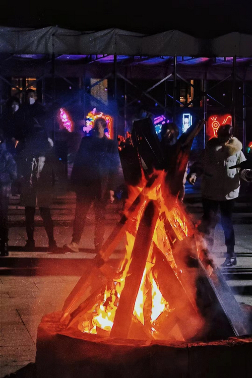 夜幕降臨,篝火晚會將露營地的新年氣氛推向高潮。受訪者供圖