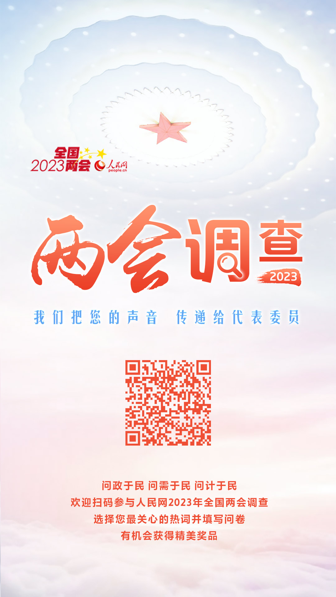 如何更好統籌疫情防控和經濟社會發展、如何穩增長穩就業穩物價、今年您期待哪些社會保障舉措、民法典實施以來您身邊哪些現象有所改善……2023年全國兩會召開期間,人民網記者將把調查結果和網友心聲帶給代表委員。
