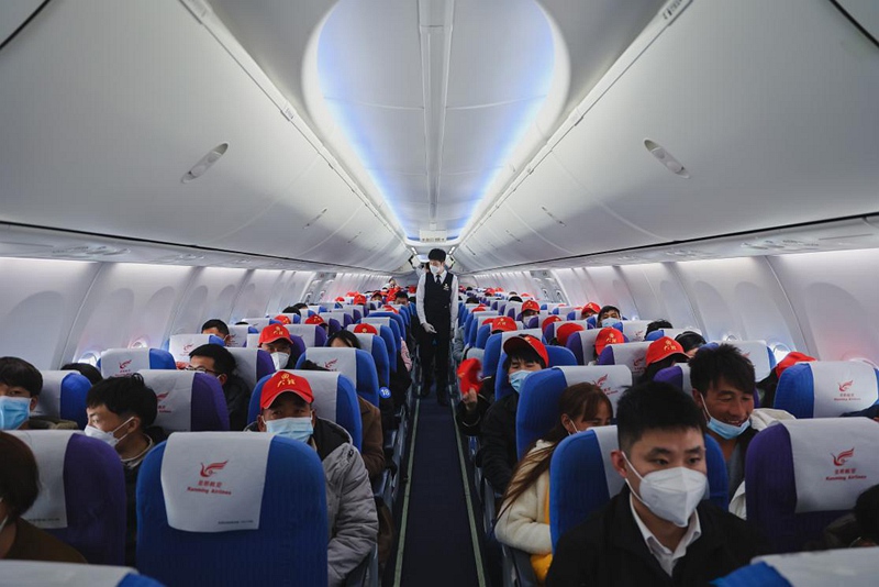 經過多方努力,1月30日,一架目的地為上海浦東機場的奉賢—大理“點對點”專機從云南長水機場順利起飛,首批181名云南省大理白族自治州務工人員安全抵滬。