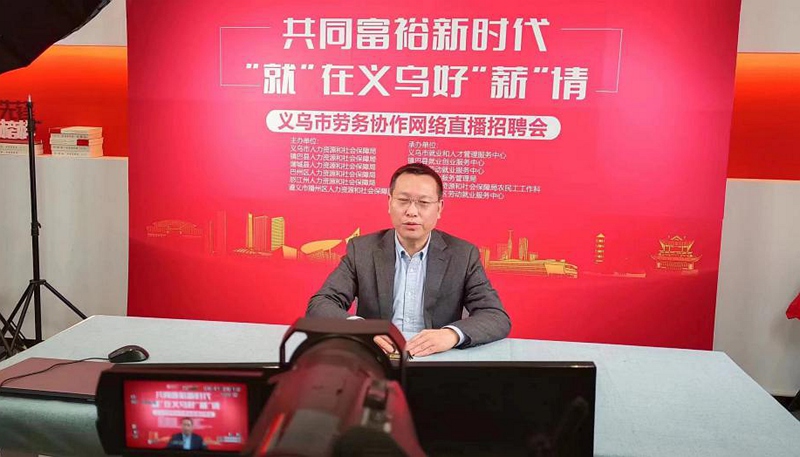 義烏市人力資源和社會保障局黨委書記、局長王國成變身“帶崗”主播。浙江省義烏市人力社保局供圖