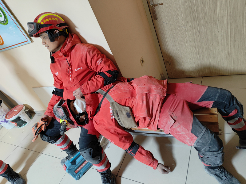 救援隊隊員休息時疲憊的身影。貴興救援隊供圖