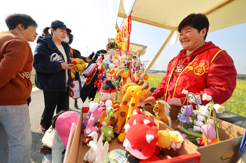 “高人氣”的賞花節更是一場帶動文旅經濟的消費節?;顒蝇F場,花海創意市集人氣爆棚?!盎囊翱Х取鼻霸S多年輕人駐足打卡,“我覺得特別有調性,和油菜花相襯,非常能出片?!笔峙蹩Х扰恼盏挠慰托钦f?,F場還有攤位正在制作寧波特色菜——烤菜年糕,供絡繹不絕的游人品嘗?!斑@是艾草年糕,那是高粱年糕。希望油菜花海觀賞節聚集的人氣,將農產品優勢轉化為經濟優勢?!本吹麓宕迕窈楹s介紹,自己每年將自家種出的優質稻米做成年糕,至今已有十年的制作經歷。