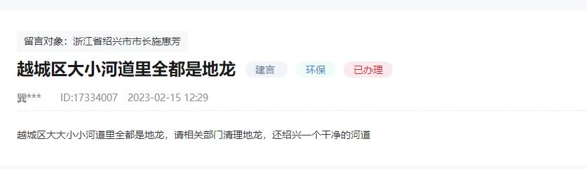 “今年路過河邊的時候,好幾次看到有人在下地籠?!?022年,該名網友逛紹興本地論壇時,看到有人提到在人民網“領導留言板”留言有回音,所以這次他想試試看,結果令他很驚喜,“還真的有回復,越城區農業農村和水利局打來了電話,說明了區里對地籠的清理整治計劃,我很滿意?!?/p>