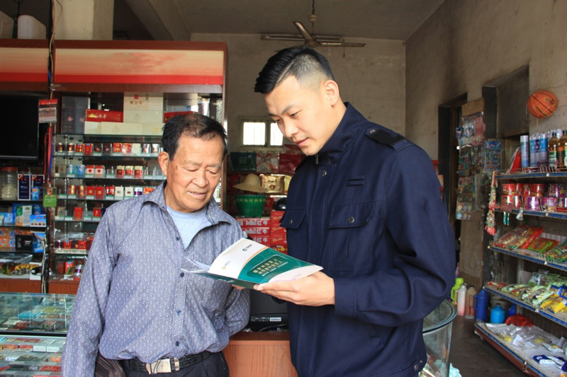 金華市煙草專賣局專賣管理員向零售戶講解宣傳手冊。金華市煙草專賣局供圖