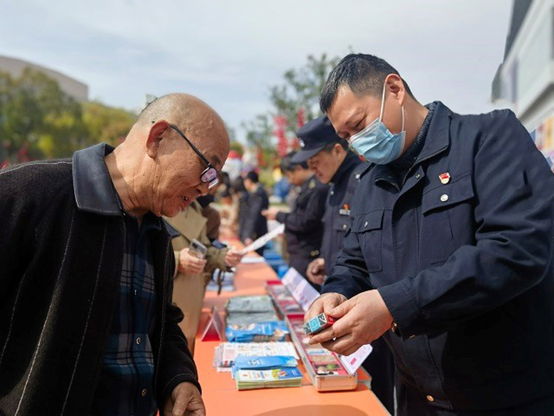 金華市煙草專賣局工作人員為群眾講解真假煙鑒別技巧。金華市煙草專賣局供圖