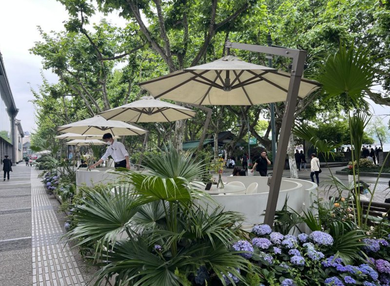 “商業‘外擺’既增加了經營空間,又可以招攬生意,何樂而不為?”湖濱步行街某咖啡店店員告訴人民網,作為店內經營區域的延伸,“外擺”區的生意一直不錯,特別是周末,有時候都不夠坐?!皩τ谖覀冞@樣的咖啡館來說,‘外擺’是很好的選擇。天氣好,店內的客人如果比較多反而會悶熱,坐在外面則更舒適,用餐體驗是一個重要的引流因素?!痹摰陠T說。