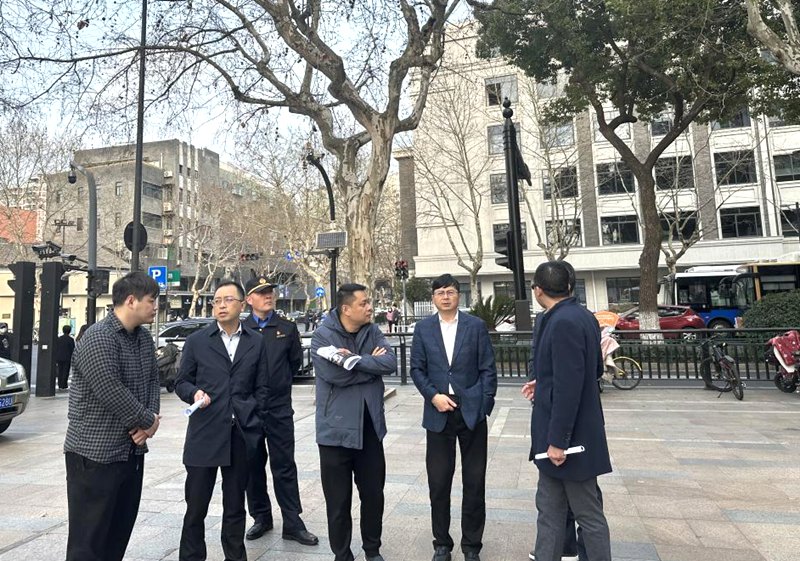 湖濱街道辦事處副主任召集區域發展辦、綜合信息指揮室公共管理辦公室、街區發展服務中心,對商業“外擺”工作進行調研。湖濱街道供圖