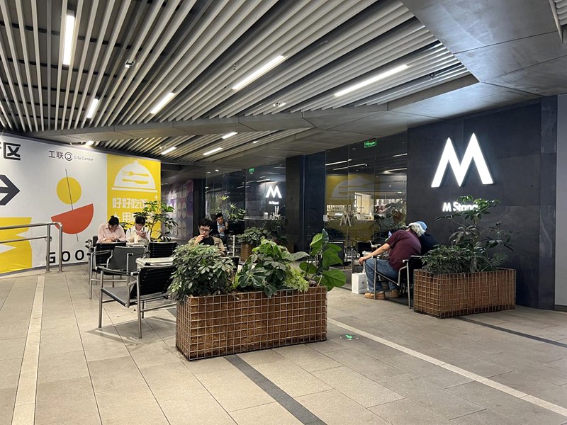 “店鋪是2019年開始營業的,外擺區域隨后就審批了下來?!北烫也蛷d(杭州湖濱銀泰in77-B區店)店長朱林美告訴人民網,湖濱商圈人流量大,店鋪的位置也比較好,每天到了用餐高峰期,店內通常不夠坐,這時,“外擺”區域就發揮作用了。