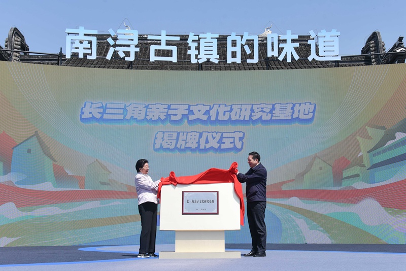 開幕式上,第十屆全國人大常委會副委員長、中國關心下一代工作委員會主任顧秀蓮與湖州市委書記陳浩共同為長三角親子文化研究基地揭牌。