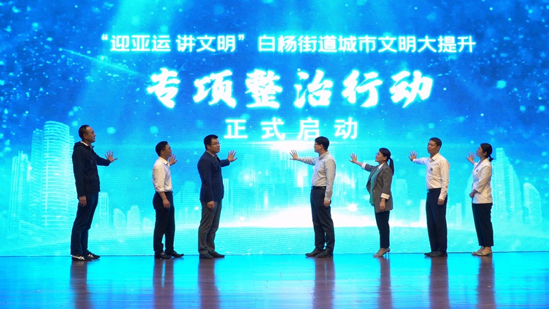 5月10日,白楊街道城市文明大提升十大專項整治行動啟動,正式吹響白楊文明迎亞運的“集結號”。白楊街道供圖