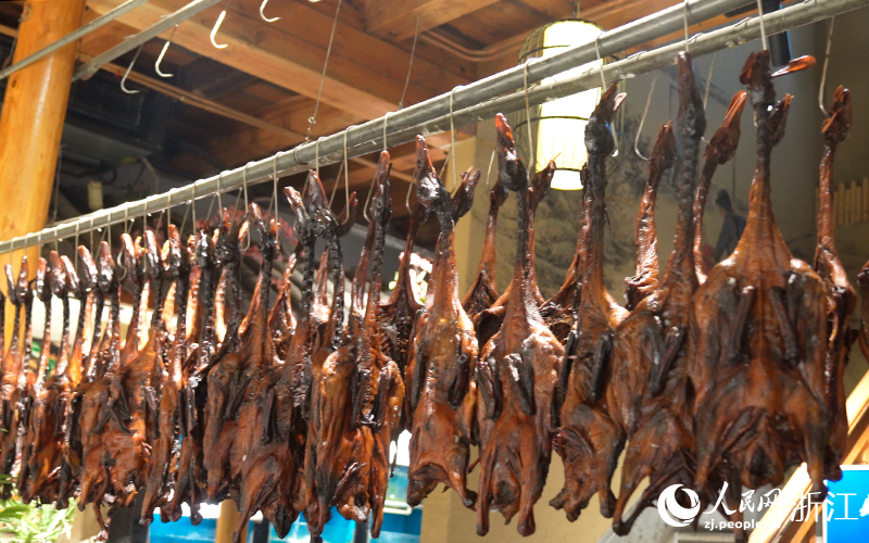 老章的飯店大堂掛滿了醬貨。人民網 艾宇韜攝