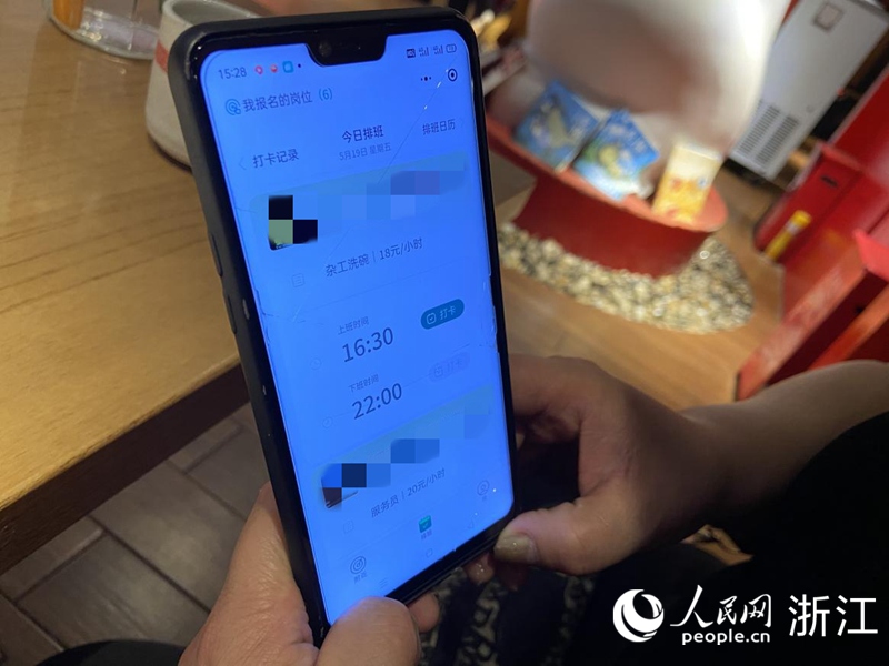 每天打卡上下班后就能按時領到工資。人民網 方彭依夢攝