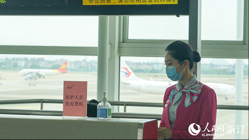 施依露在登機口工作。人民網記者 艾宇韜攝