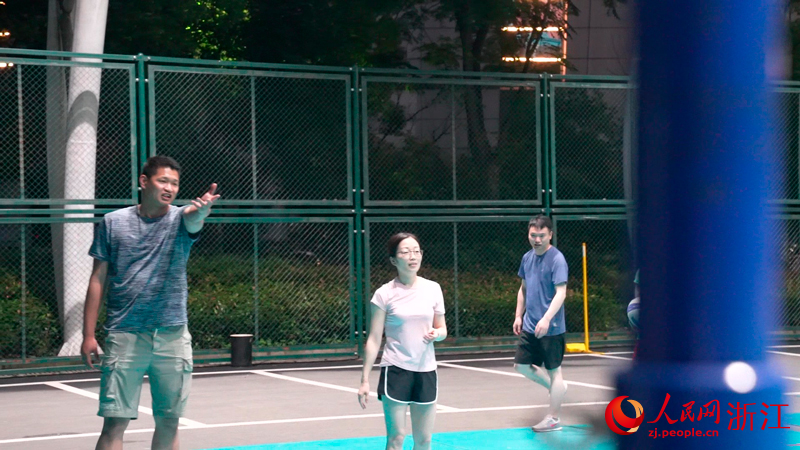 “他們打的是氣排球,速度沒有排球快,易上手,適合的年齡段也較廣?!毙煨”忉尩?。原先,這里是停車場,他看到當地排球愛好者很難找到一些正規的運動場地,便自己用塑膠鋪出了如今的四塊標準排球場,之后又找來了攔網、排球等器械設備,自己偶爾也會下場指導規范動作?!斑@些愛好者對排球的熱情很高,也會經常組隊參加比賽,我也正好用自己的一技之長,促進本地的排球運動氛圍?!毙煨”f。