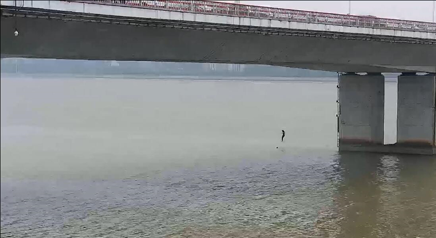 這一看,不得了!橋下的江面上,一個人在水中拼命掙扎,并不停呼救。