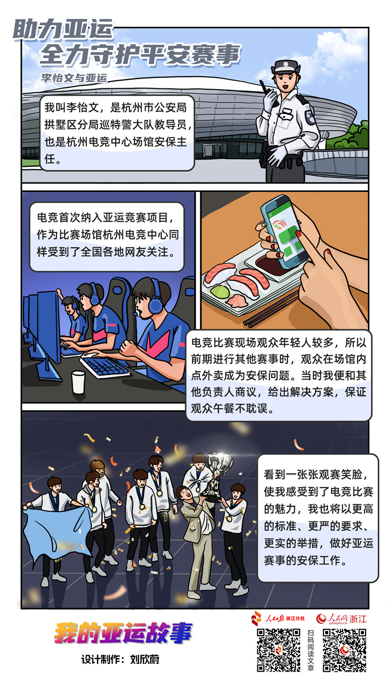 本屆亞運會,電競首次納入正式競賽項目,作為比賽場館的杭州電競中心同樣受到了全國各地網友關注。為了做好杭州電競中心安保工作,李怡文從一名游戲零基礎“小白”開始,開始接觸并了解《英雄聯盟》《王者榮耀亞運版本》《和平精英亞運版本》等納入杭州亞運會電子競技比賽項目規則。