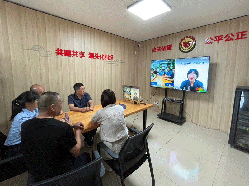 寧波海曙法院望春法庭法官通過共享法庭連線司法所和糾紛雙方指導調解。浙江省高級人民法院供圖