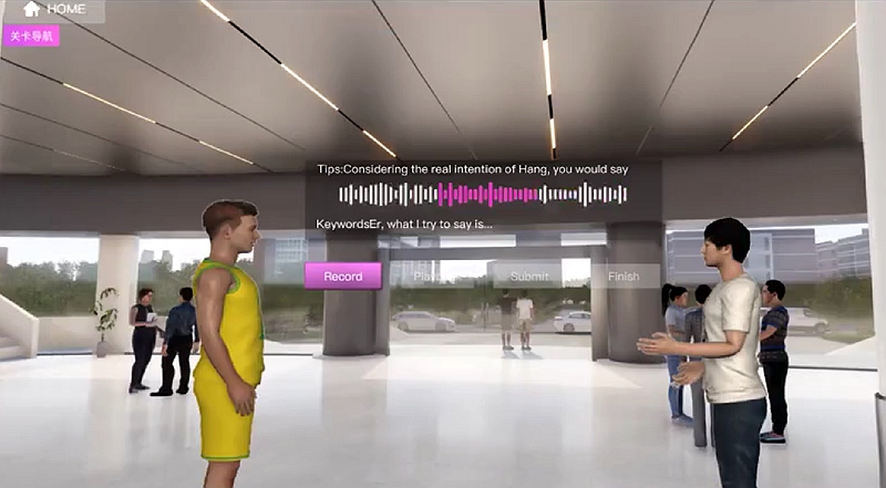 杭電是一所在電子信息上有著鮮明特色的高校。因此在平臺開發過程中,開發團隊將3D建模技術、AI智能語音評測、NLP自然語言處理技術充分融入實驗中,共設置了五個關口,整個過程像打游戲闖關一樣,逼真、高效且富有趣味性。