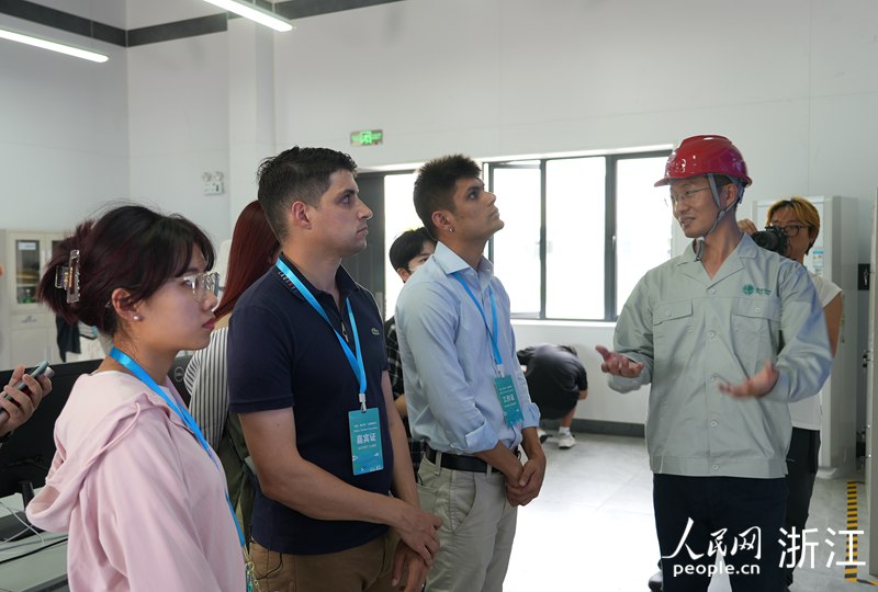 蕭山發電廠工作人員正在為調研團隊成員進行講解。人民網 方彭依夢攝