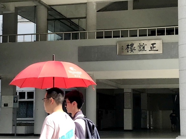 大紅傘又名誠信傘,如今安放在學校正門右側的門衛室內,方便進出的老師、學生及家長使用。