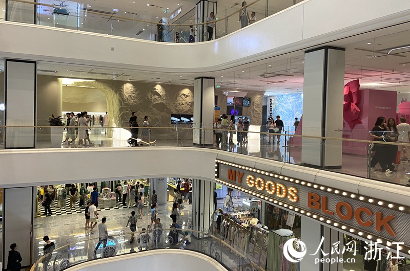 湖濱銀泰in77 E區匯聚了運動潮牌、電子產品以及網紅美食,成為了年輕人的消費主場。人民網 方彭依夢攝